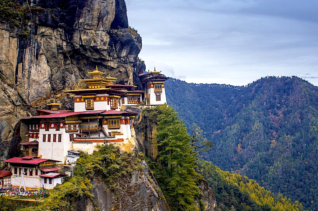 El Monasterio de Taktsang (“Nido del Tigre”) es el sitio más sagrado de Bután, un reino montañoso. Se ubica suspendido en un acantilado a unos 3,120 metros de altitud sobre el valle de Paro.