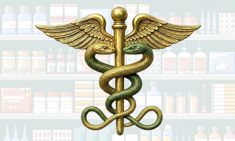 El caduceo, un bastón alado con dos serpientes, proviene de Hermes, mensajero de los dioses griego. Originalmente representaba heraldos y comunicación; sin embargo, en 1902 fue adoptado por el Departamento Médico del Ejército de EE. UU., vinculando mensajería, autoridad y salud. En farmacia, nos recuerda la importancia de la comunicación, la ética profesional y la transmisión segura del conocimiento.